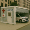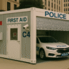 EXTERIOR SECURITY SHUTTER, CEILING FINISHES WITH COLOR OPTIONS: BLACK, WHITE, GRAY, PVC FLOOR, ONE (1) PAINTED STEEL SECURITY DOOR.