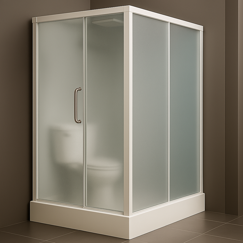 Features: Adjustable levelers at the bottom, Waterproof SMC chassis, specially reinforced, Reinforced right side panel, waterproof, Frosted tempered glass (5MM), 3C certified, Reinforced left side panel, waterproof, Hollow PVC board (2 cm) with marble pattern, Reinforced back panel, waterproof, PVC hollow board (2 cm) with marble pattern, Top cover, nano composite thermal insulation plate (2 cm) with marble pattern, Door, 3C certified frosted tempered glass (5MM), Two fixed glass panels, 3C certified frosted tempered glass (5MM), Two partitions, hollow PVC board (2 cm) with marble pattern, Main frame profile, aluminum alloy, Pulley, suitable for glass doors, Anchor screws, height adjustable, Thickened PVC sink, Beauty mirror, decorative glass, Water-saving faucet, shower, and mixer valve, Stainless steel shelf, Faucet + inlet pipe + mixer valve, Round handle, Ceramic toilet, Standard lighting + ventilation fan, Fixing screws.