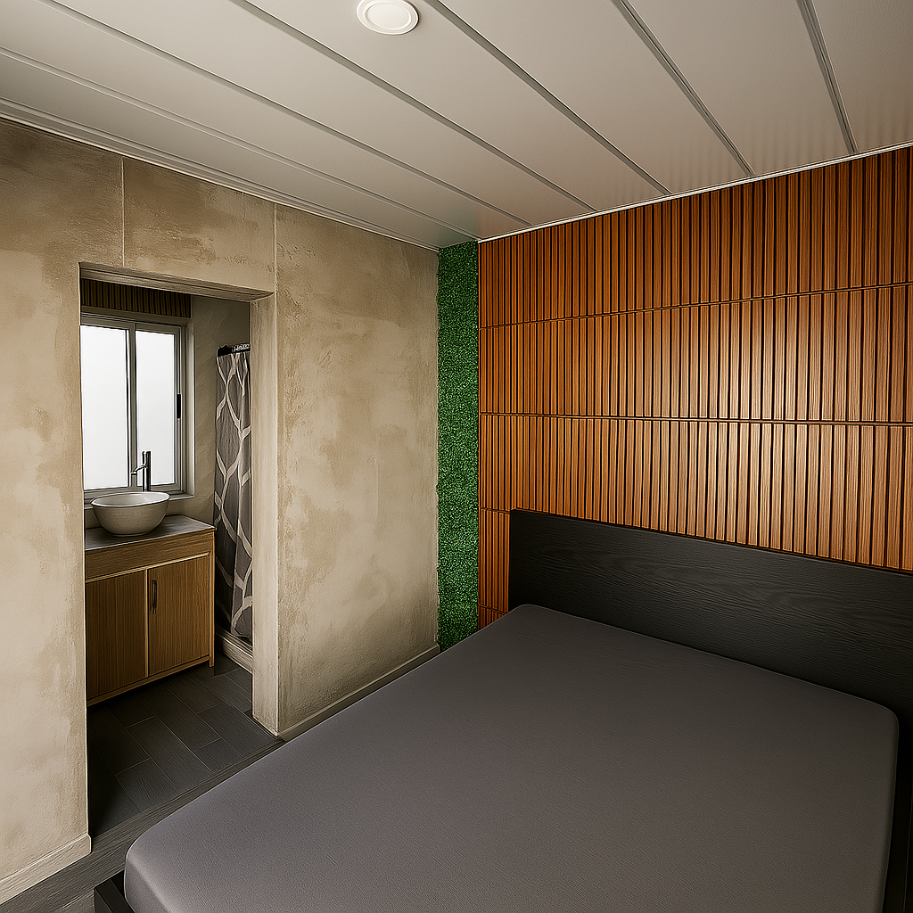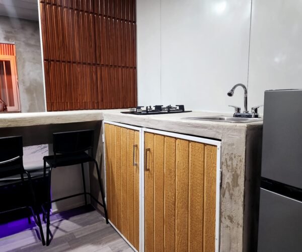 1 BEDROOM, 1 COMPLETE BATHROOM, KITCHEN, BAR, SLIDING DOOR, WALL AND CEILING FINISHES WITH COLOR OPTIONS.