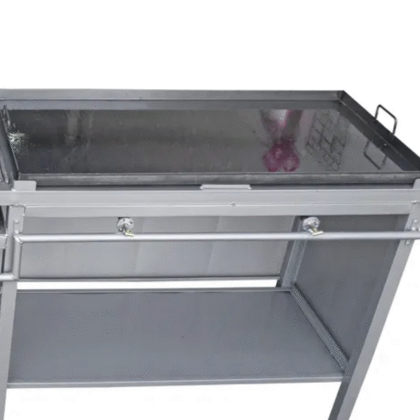 Features: Made of tubular steel covered with black sheet metal and painted aluminum color